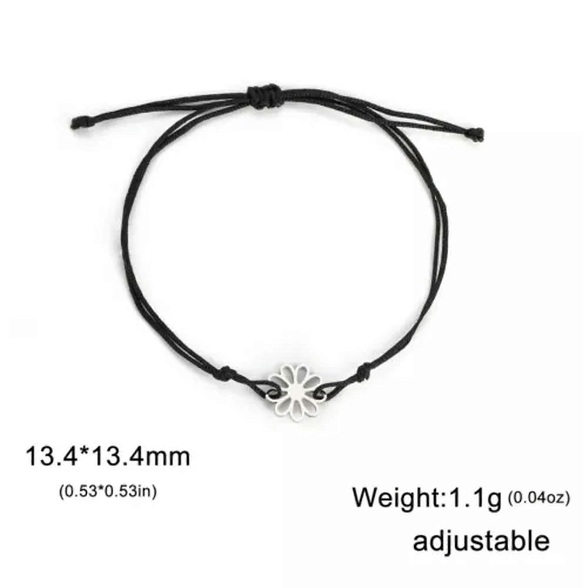 RSAMD Sweet Flower Charm Bracelet Stainless Steel Bracelets Bohemian Jewelry for Women-17-22cm-F Steel Black