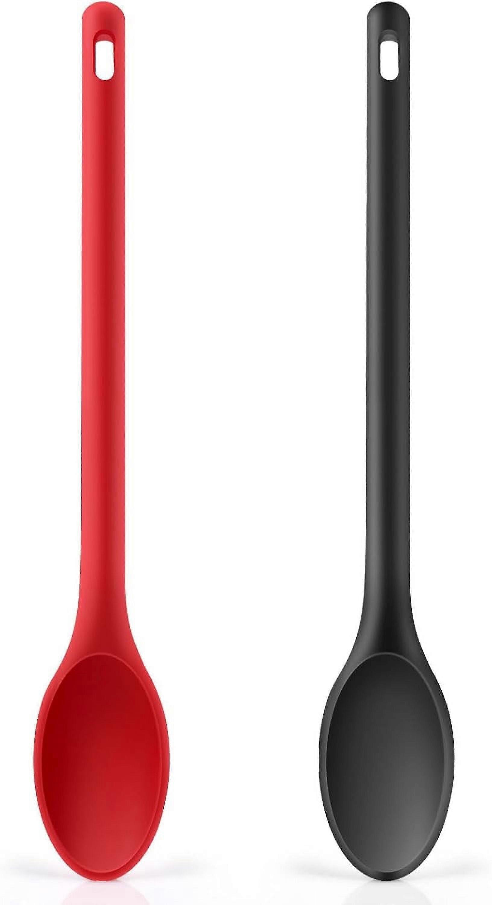 Kiibsot 2 Pack Long handle Silicone Mixing Spoon, 12" Stirring Spoons Nonstick Heat-Resistant Rubber Mixing Spoon for Cooking Baking