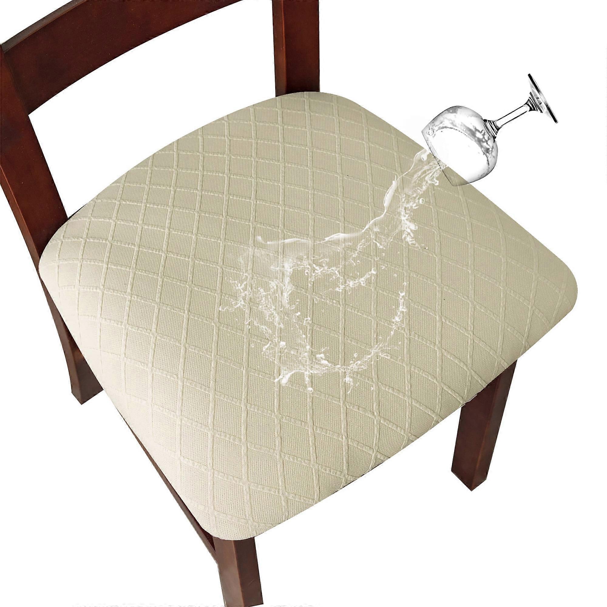 Genina Waterproof Seat Covers for Dining Room Jacquard Chairs Covers Removable Dining Kitchen Chair Cover(Set of 4,Beige)