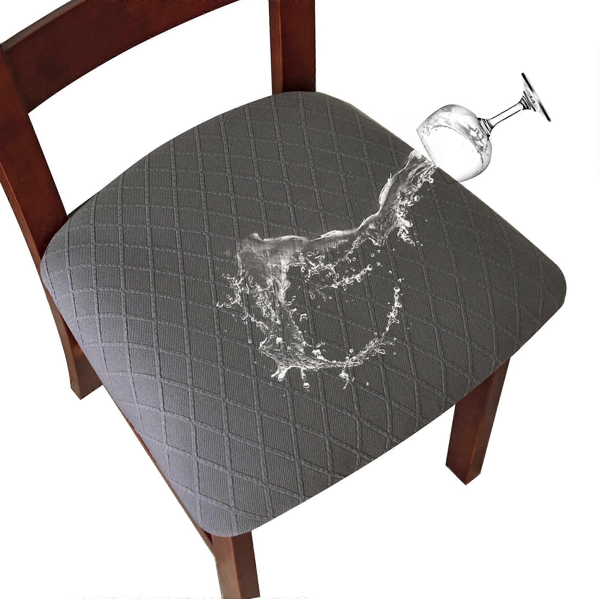 Genina Waterproof Seat Covers for Dining Room Jacquard Chairs Covers Removable Dining Kitchen Chair Cover(Set of 6,Dark Grey)