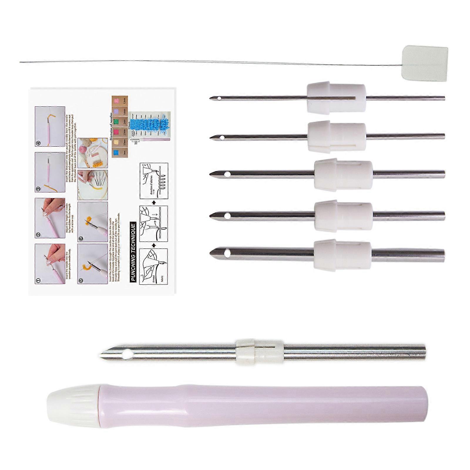 Stainless Steel Embroidery Punch Needle Set Including Adjustable 6 Head Ergonomic Handle Storage Case for Home Multicolor