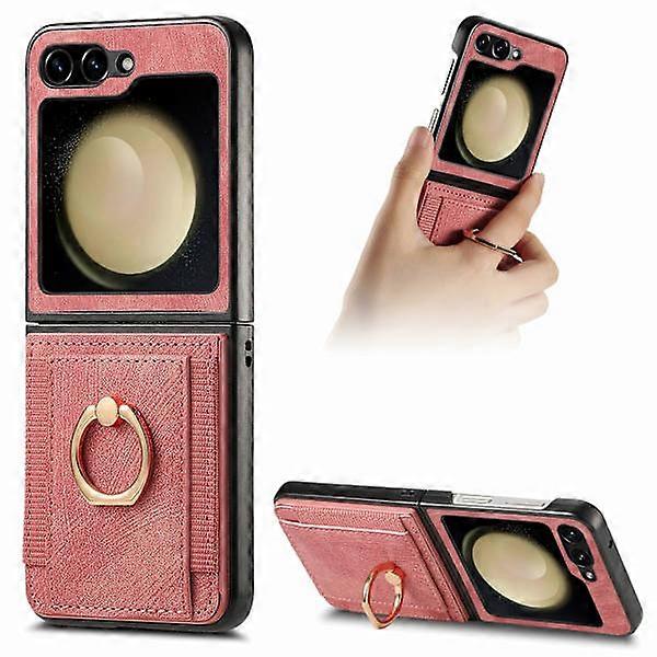 Compatible with Samsung Galaxy Z Flip 5 - Ring Holder Shockproof Card Holder Case Pink