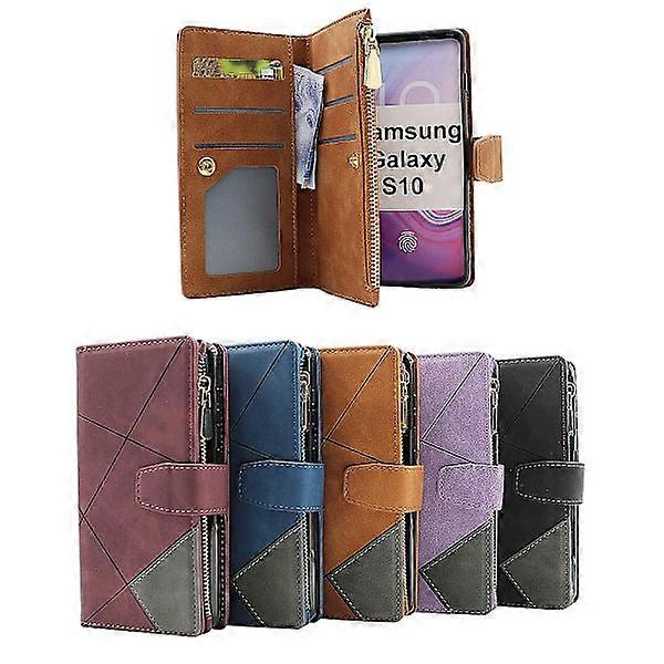 XL Standcase Luxury Case for compatible with Samsung Galaxy S10 (G973F) XL Standcase Luxury Case with 9 card pockets, one of which is transparent, perfect for your driver's license or favorite credit card. Behind the first 3 card pockets there is also a compartment where you can keep banknotes or receipts. The shell of the mobile wallet is made of TPU, so it is a soft frame that the mobile phone rests in. XL Standcase Luxury Case has a stand case function so you can stand the mobile phone up if you are going to watch a movie on your mobile phone. The surface of XL Standcase Luxury Case is quite soft and smooth and feels very luxurious to hold. Fine lines form a stylish pattern on the outside of the wallet. The inside of the case is solid color. The case closes with a magnetic flap. And of course there is a cutout for the camera on the back of the case so you don't have to remove the mobile phone when you want to take a picture. In the middle of the case there is an extra flap that has 3 card pockets on both the front and back and a smaller compartment in the middle for, for example, some coins or the like. The compartment closes with a zipper, but note that this compartment is not very large. And the more you put in the wallet, the thicker it becomes. The extra flap has a snap lock so you can attach the flap to the front of the wallet. Material: PU Leather & TPU Zipper color: Gold