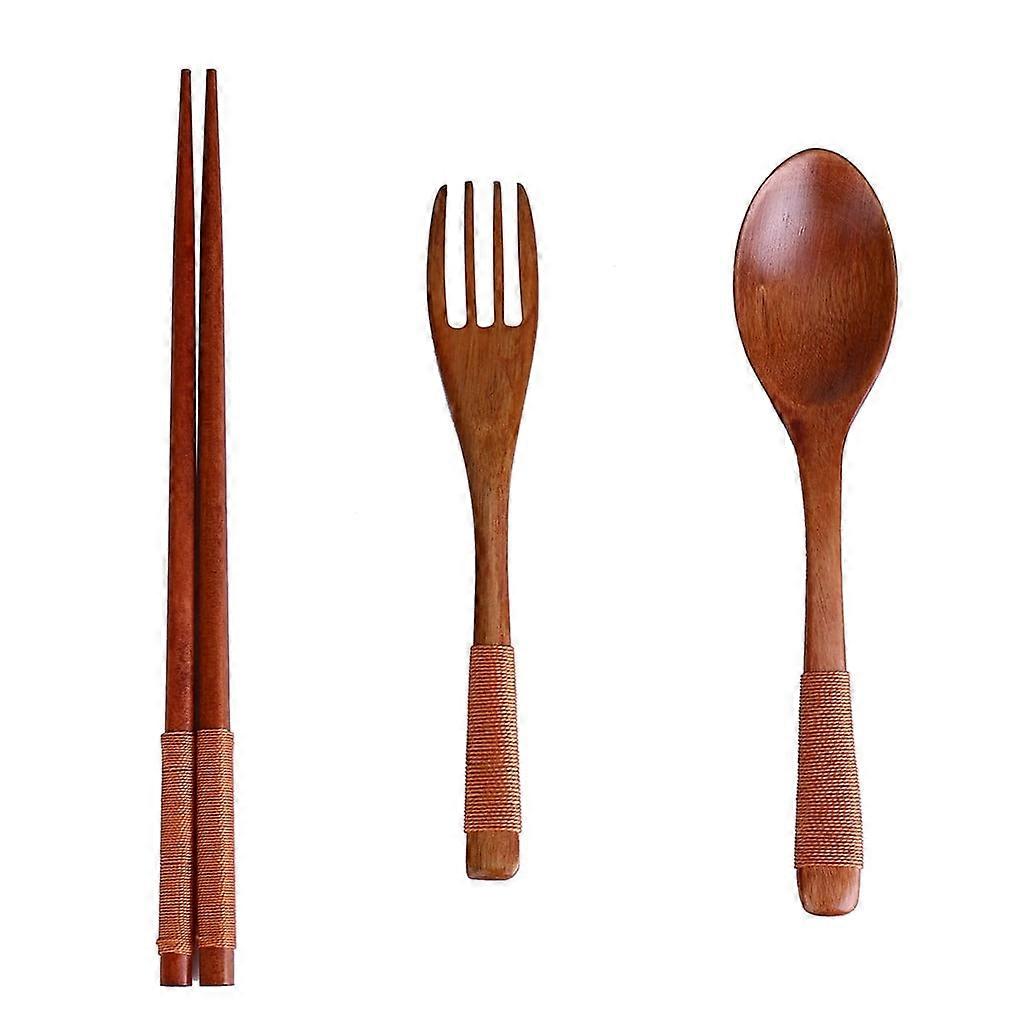 VALSEEL Kitchen Appliances Japanese Vintage Wooden Chopsticks Spoon Fork Tableware 3pcs Set New Gift Kitchen Gadgets