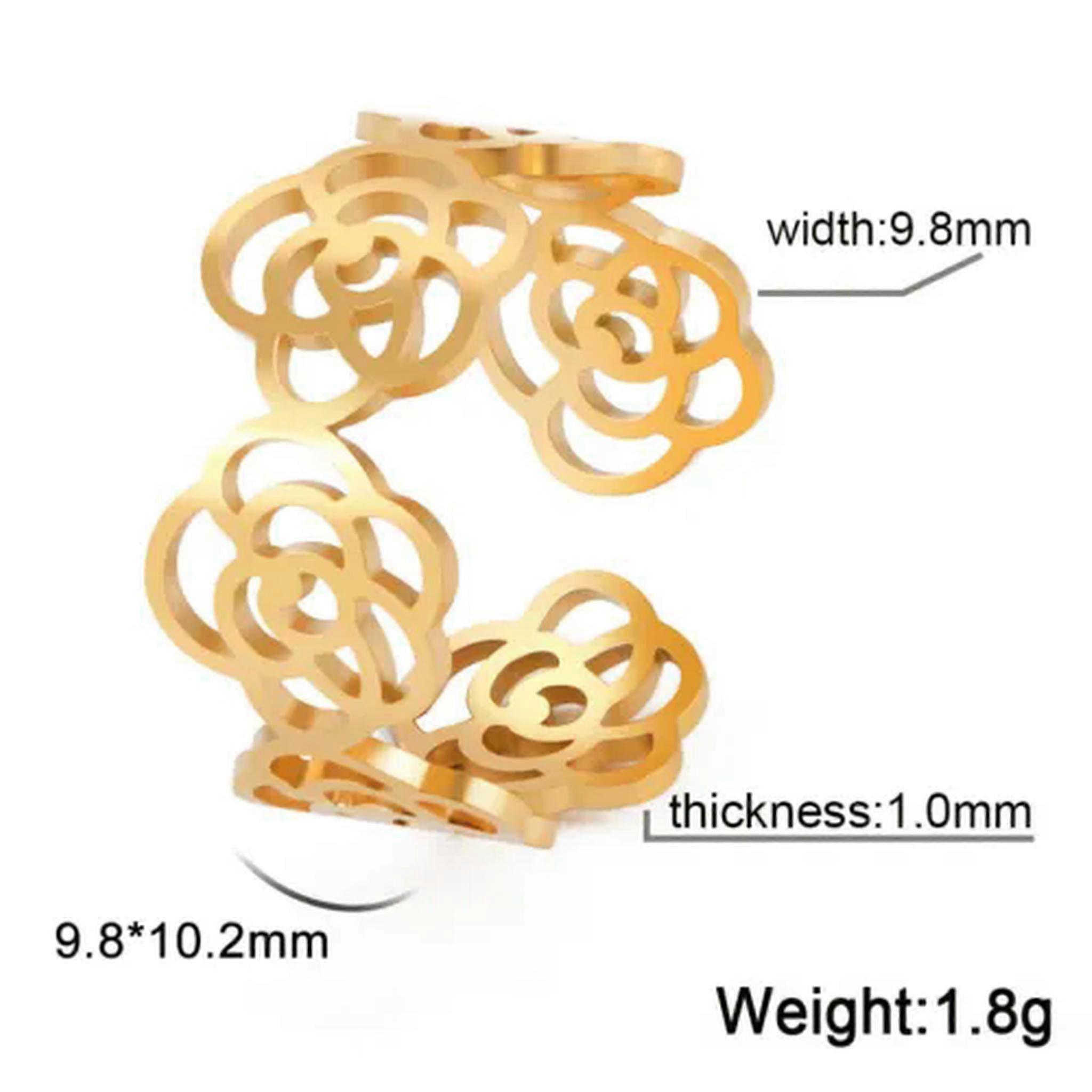 RSAMD Rose Flower Women's Rings Stainless Steel Adjustable Finger Ring Jewelry Gifts-Adjustable-Gold