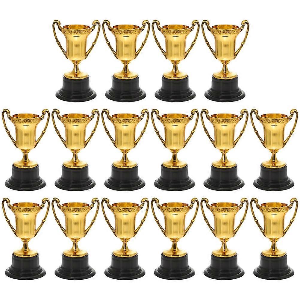 16 Mini Golden Plastic Trophies for Kids Party Favors & Sports Rewards