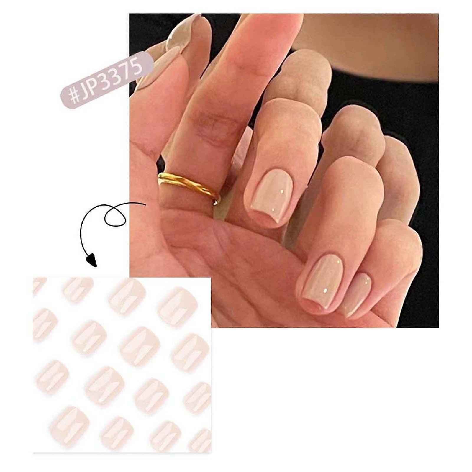 Clearance! Press On Nails Short - Soft Gel Beige, Oval Fake Nails with Glue, Fit Perfectly, Reusable, 12 Sizes