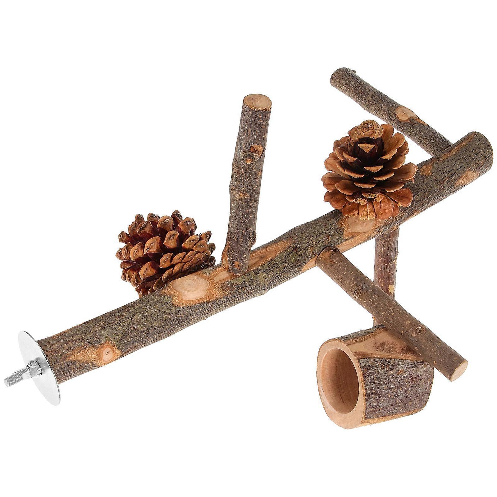 Bird Perch Stand 3Pcs Wooden Training Tool For Pet Birds Resting And Chewing Indoor Setup Brown Color