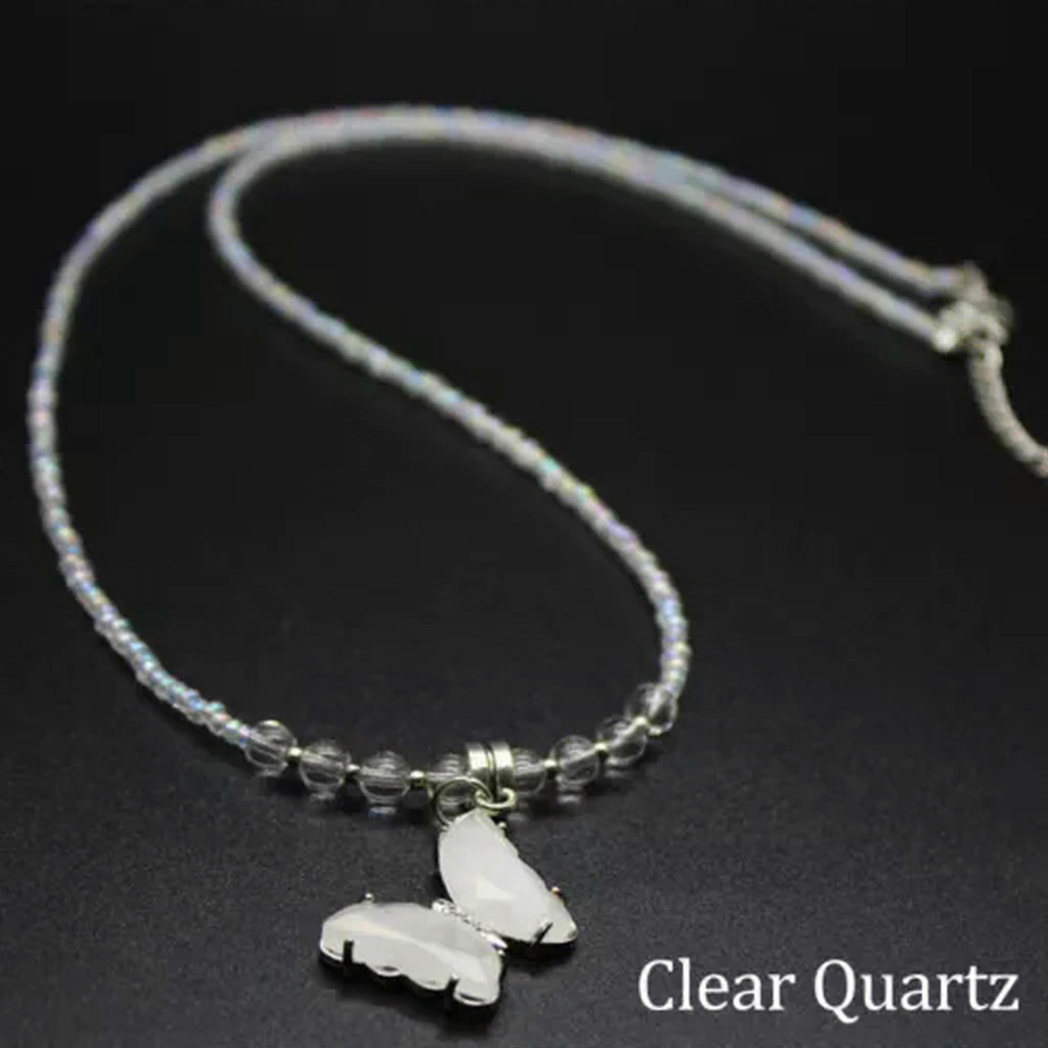 RSAMD Chakra Crystal Beads Butterfly Pendant Necklace Natural Quartz Chain Reiki Gifts-Clear Quartz-1PC (Random Pick) Welcome to our jewelry emporium that's brimming with dazzling options for every style seeker. For the lovely ladies, we have an array of enchanting pieces. From the dainty necklaces that delicately adorn your collarbone to the elaborate rings that make a bold statement. There are bracelets that add a touch of grace and earrings that enhance your beauty. But don't think we've forgotten about the gentlemen! We have a selection of masculine and stylish accessories too. Sturdy rings for a touch of rugged charm, sleek bracelets that exude sophistication, and understated necklaces that add a hint of refinement. Our collection combines timeless classics with modern trends, crafted with precision and using top-quality materials. Whether you're looking for a piece to wear on a daily basis or for a special event, we've got you covered. So, step into our world of jewelry and discover that perfect piece that reflects your individuality, no matter your gender! Suitable for Gifting Fit for Every Occasion 100% New and of High Quality Crafted from Professional-Quality Materials Easy to Pair and Wearable at All Times and Places