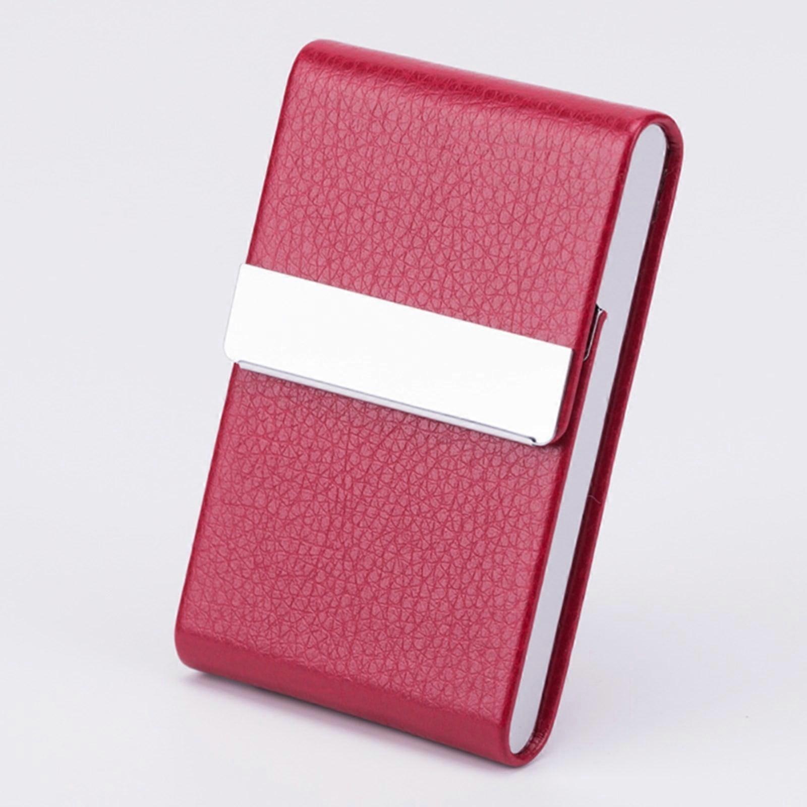 Hxoliqit,,Business Card Holder PU Leather Business Card Case Name Card Holder Slim Metal Pocket Card Holder With Shut,Red
