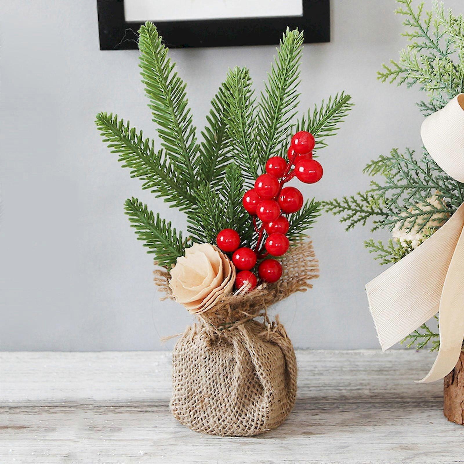 Mini Artificial Christmas Tree 10" with Ornament, Tabletop Pine for Home Office Decor, Potted Plant (A)