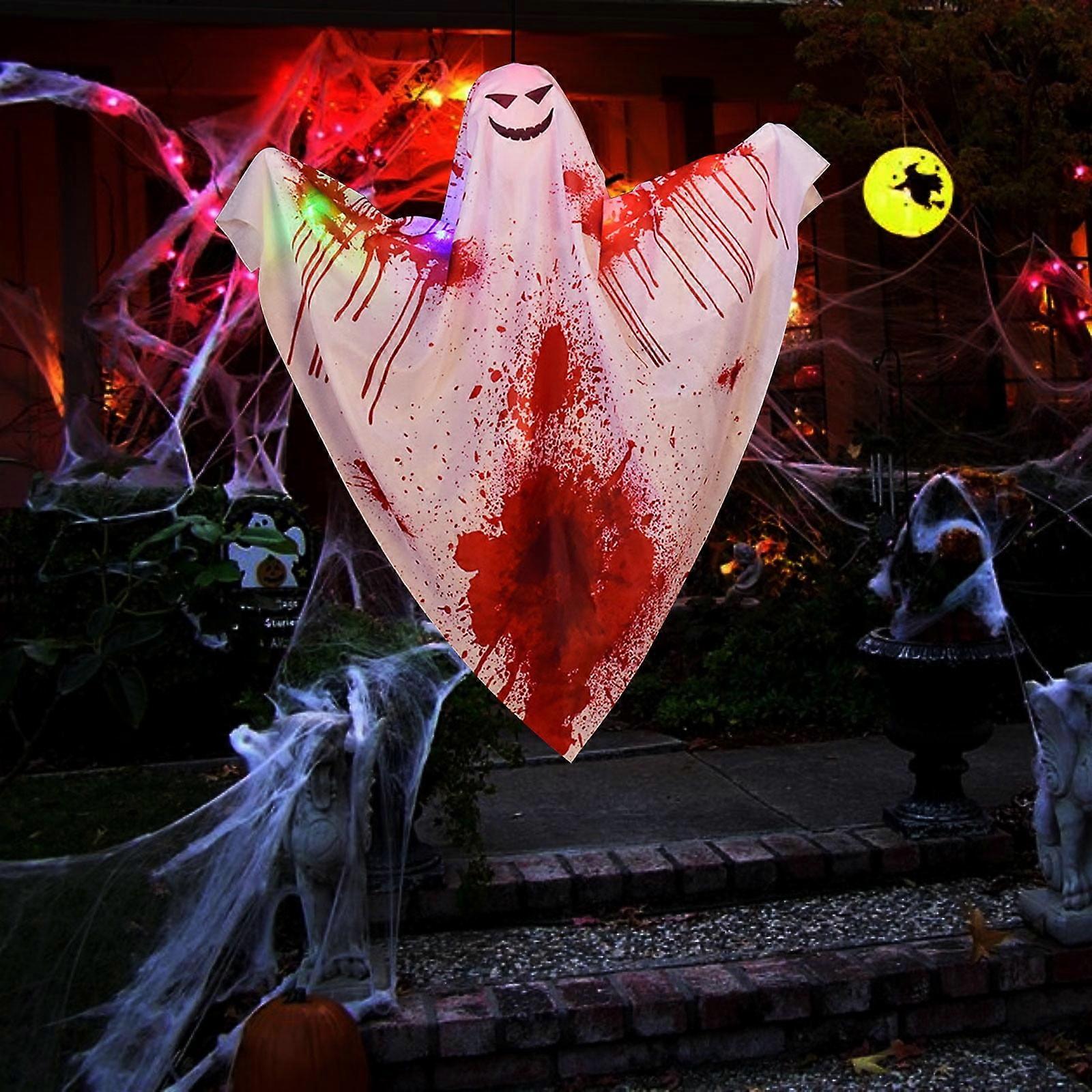 Halloween Terror with Glowing Ghost Hanging Ornament, Scary Room Decor & Festival Scene Props for Halloween Layout