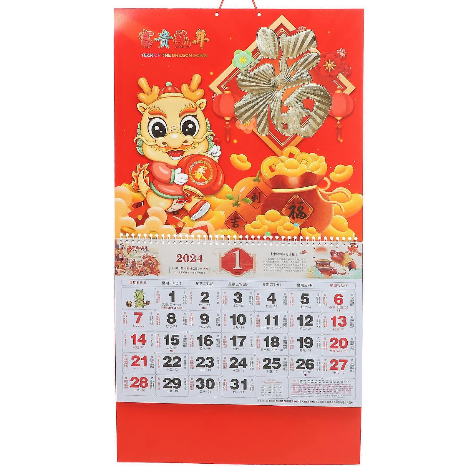 Paper Calendar Hanging Calendar for 2024 Dragon Year 2Pcs