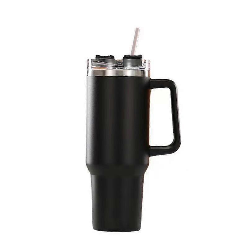 1200ML 304 Stainless Steel Insulated Water Bottle,Thermal Coffee Car Cup, Cold Hot Mugs Vacuum Flask With Handle Straw,For Sport,1200ML,Black