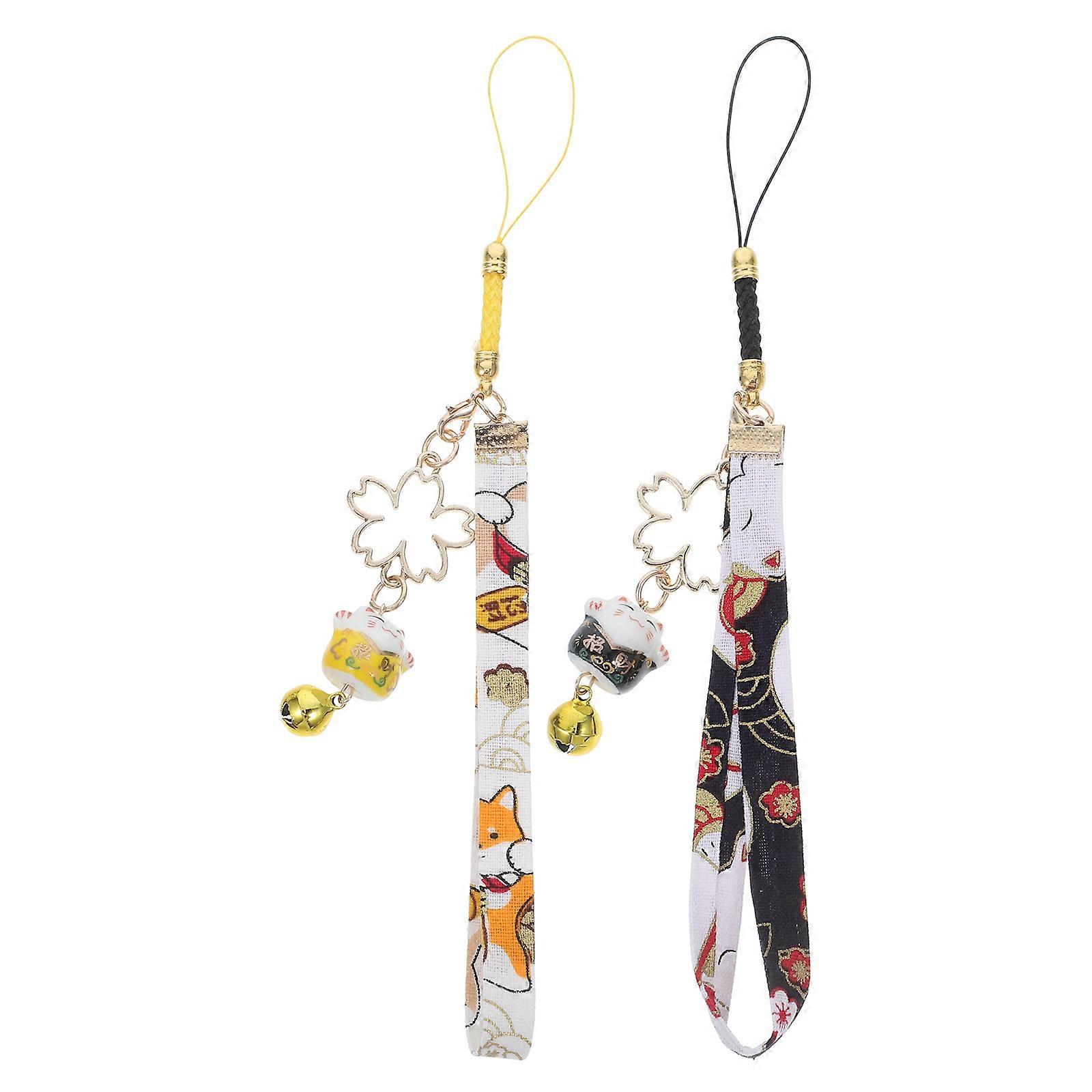 Japanese Maneki Neko Ceramic Cat Keychain for Cell Phone 6Pcs Pack
