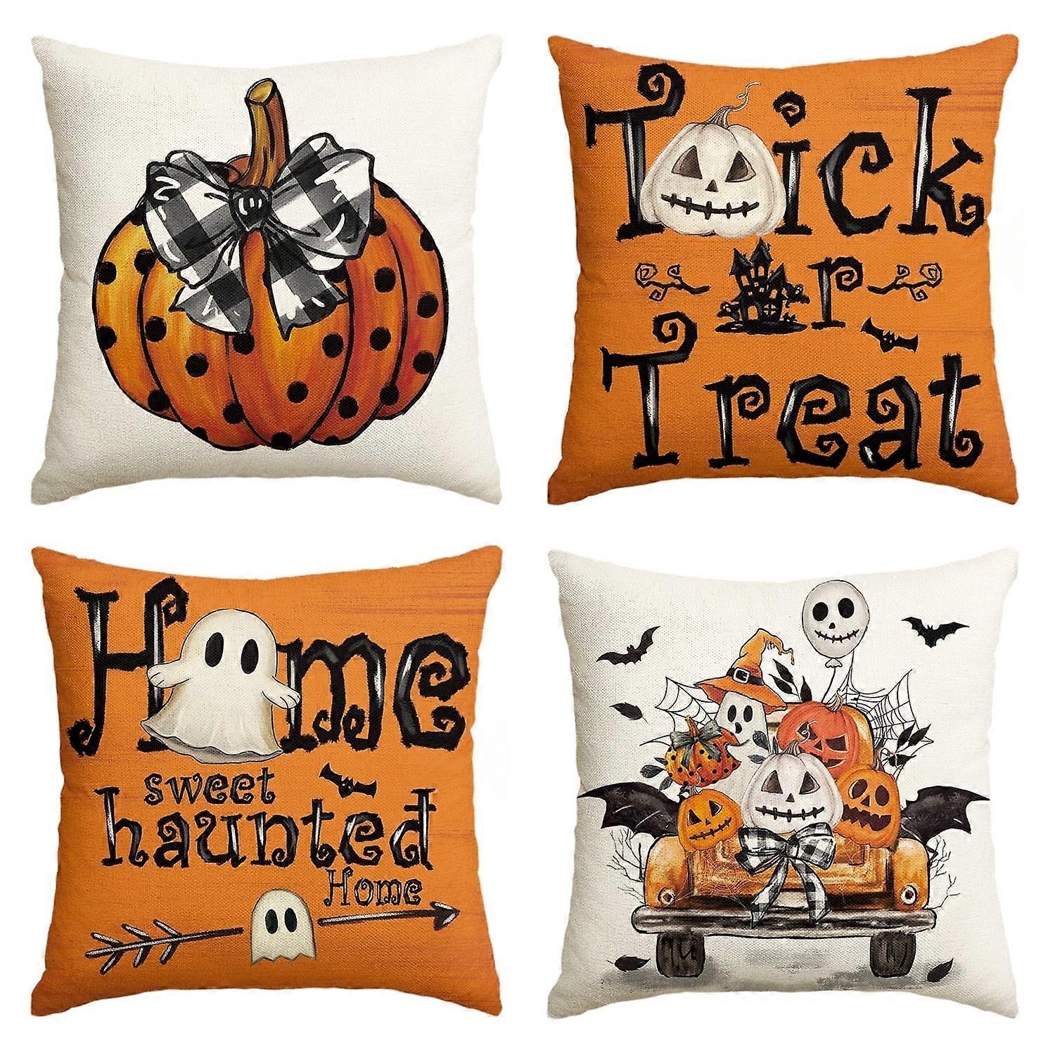 Sm:)e Polka Dot Pumpkin Jack-O'-Lantern Trick or Treat Truck Halloween Throw Pillow Cover 16x16 Inch Decorative Outdoor Cushion Covers Set of 4
