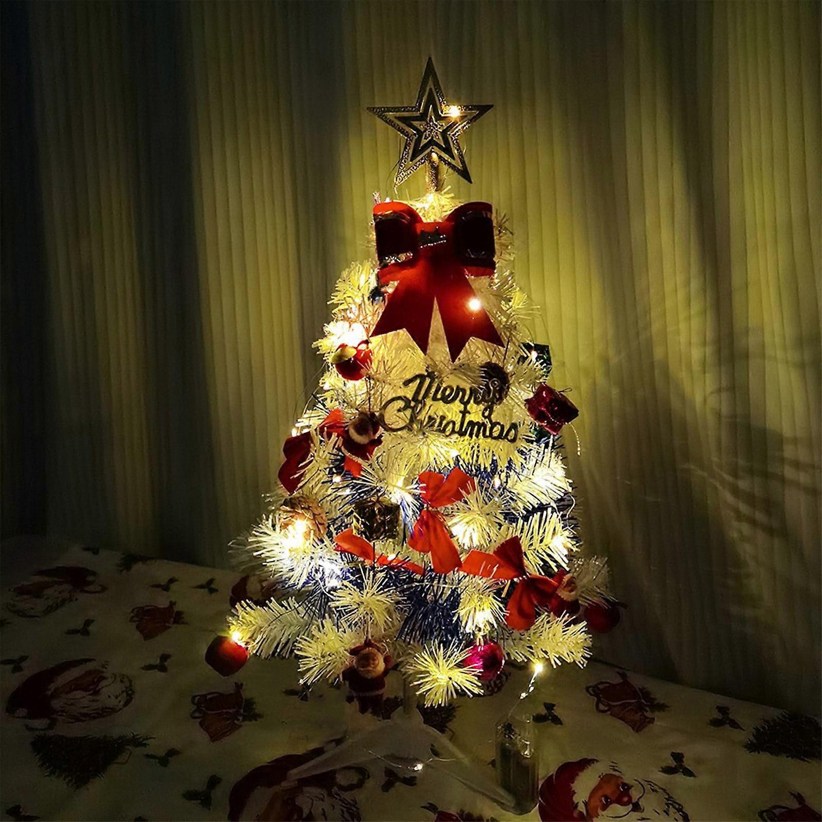 Dvkptbk 17.7" Mini Desktop Christmas Tree with Decoration Set, Battery Operated, Colored Lights, for Party Decor Gifts