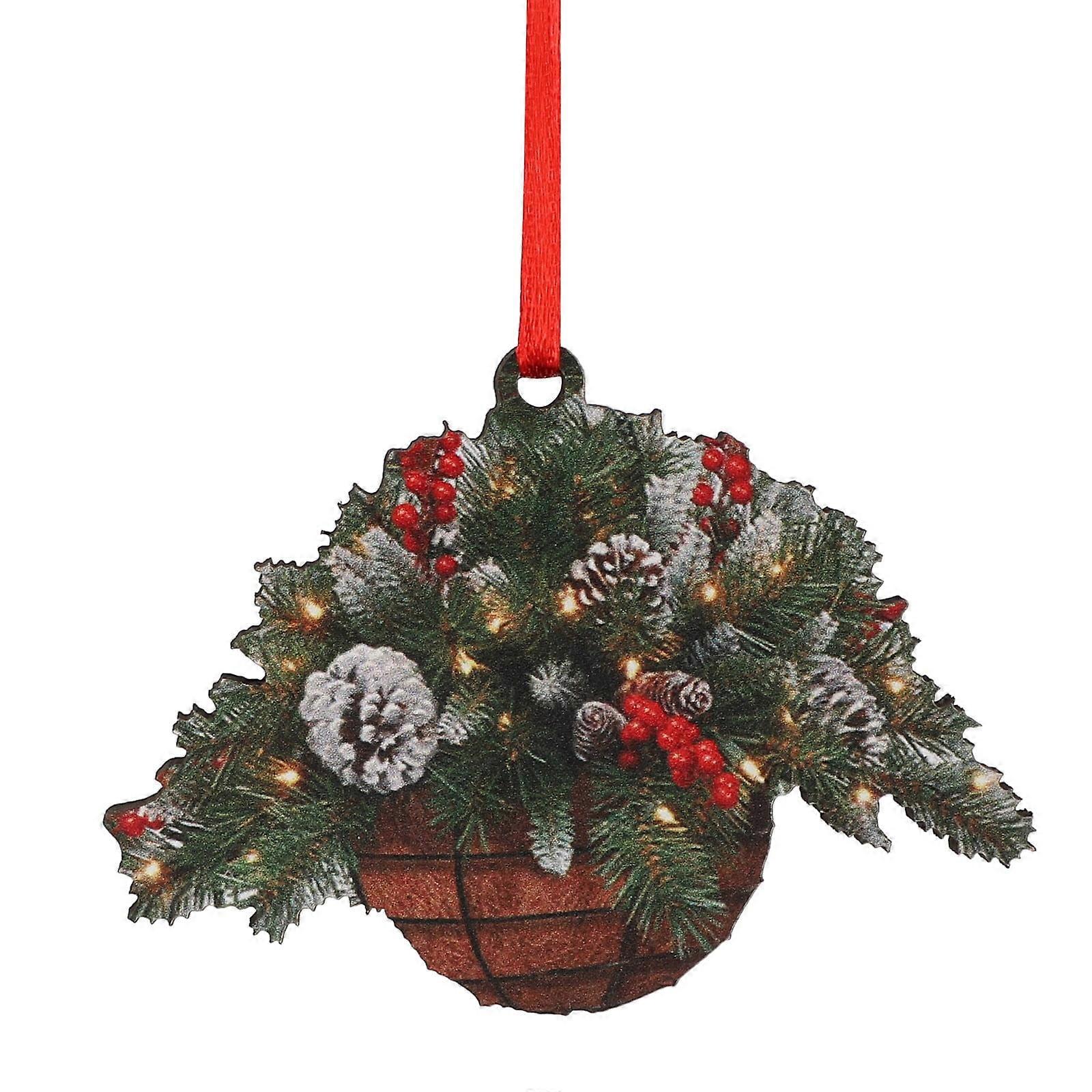 Christmas Hanging Basket Pre Lit Pendant Ornament, D Pre-Lit Christmas Hanging Basket Pendant for Tree Ornament Gift Decoration