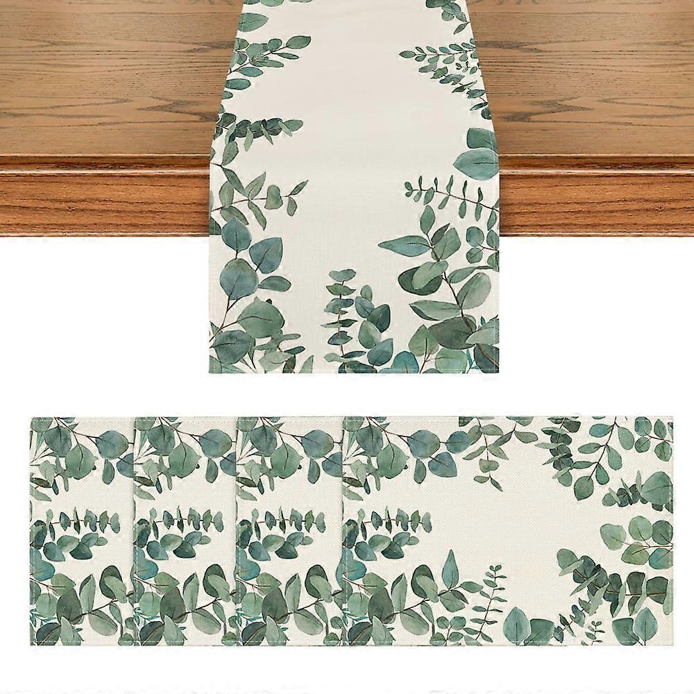 Eucalyptus Table Runner and Placemats, Seasonal Spring Summer Green Plants Holiday Kitchen Dining Table Decoration for Home Party Decor