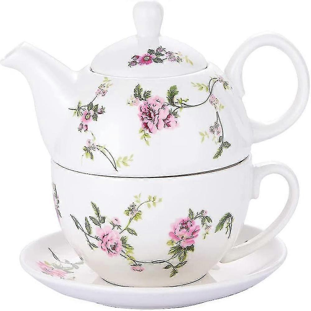 Elegant Floral Porcelain Teapot and Cup with Rattan Handle