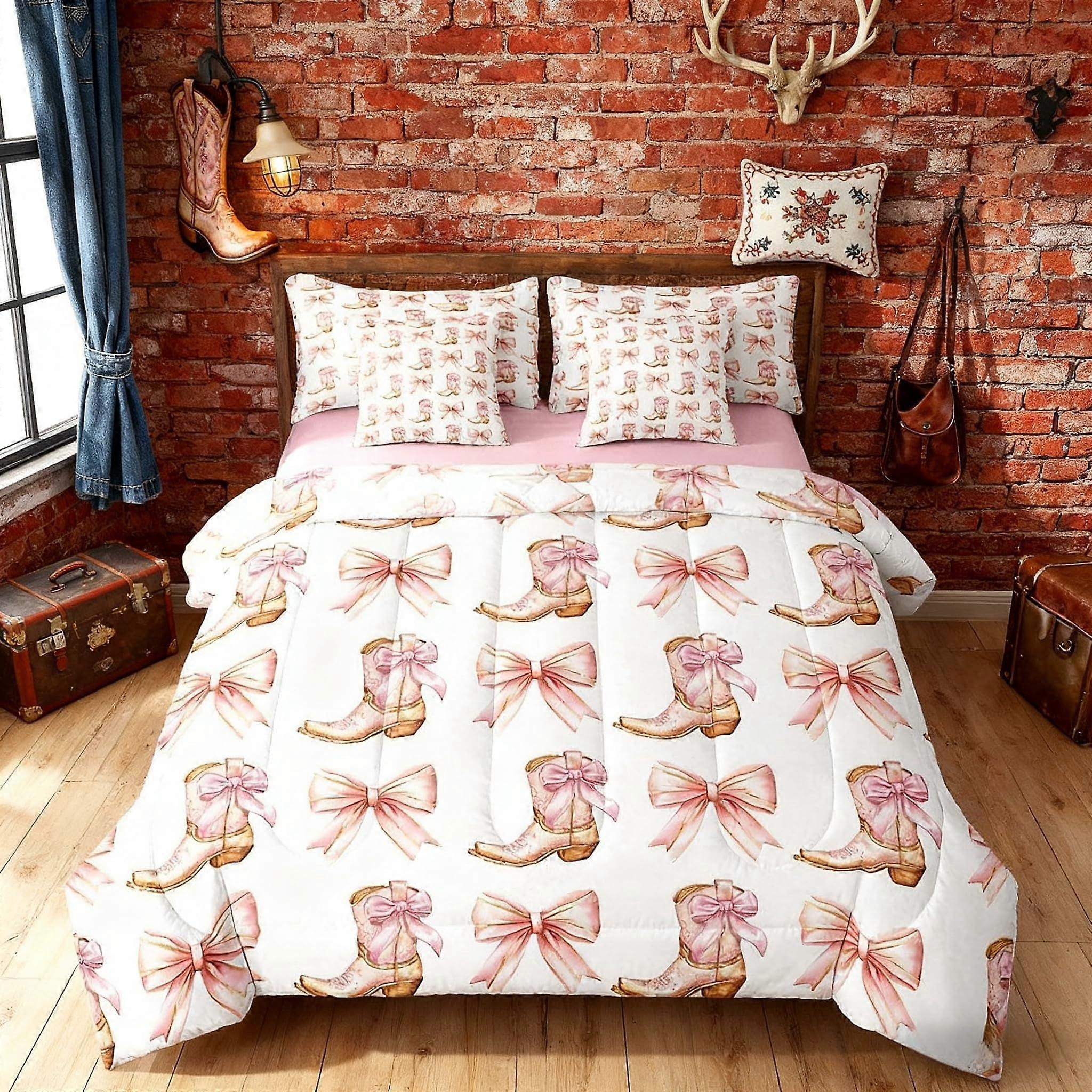 Queen Comforter Set 7 Piece Pink and Gold Western Cowgirl Bedding Rustic Farmhouse Soft Fabric