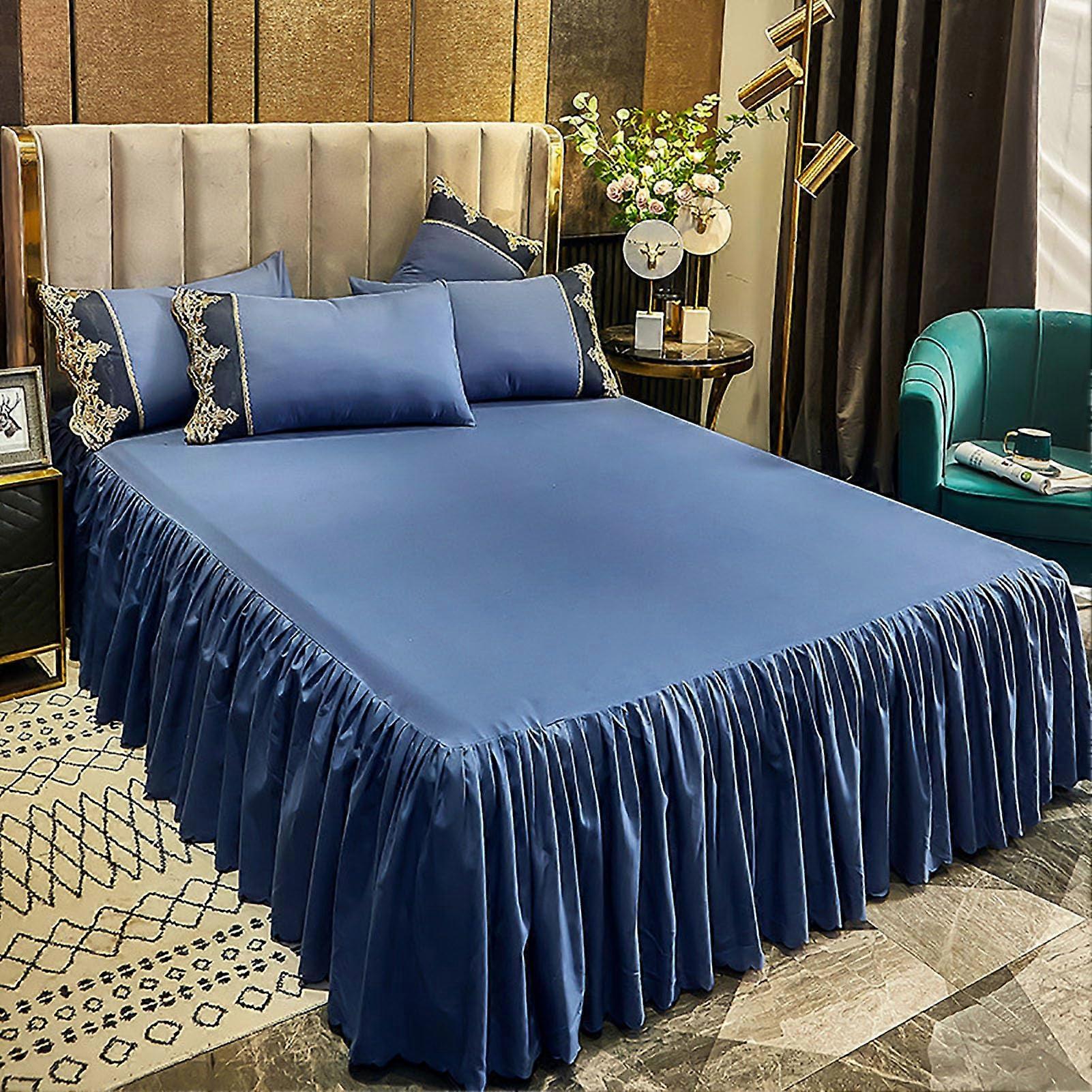 Solid Color Fitted Bed Skirt with Pillowcases, Ruffled Drop, FadeResistant, Full 150x200cm
