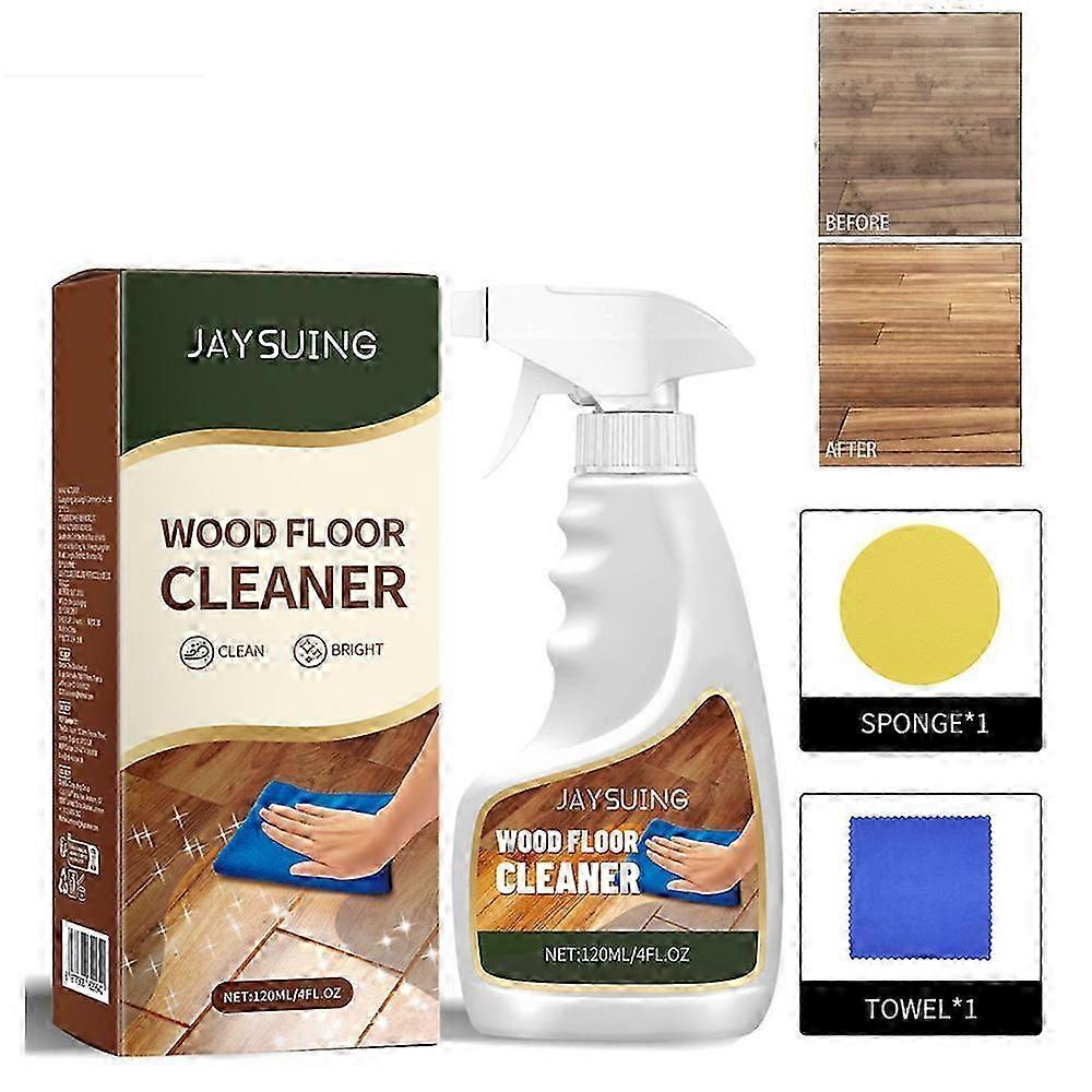 Wood Floor Cleaner, Polish & Stain Remover with Quick-Dry Formula, 120ml with Sponge & Towel