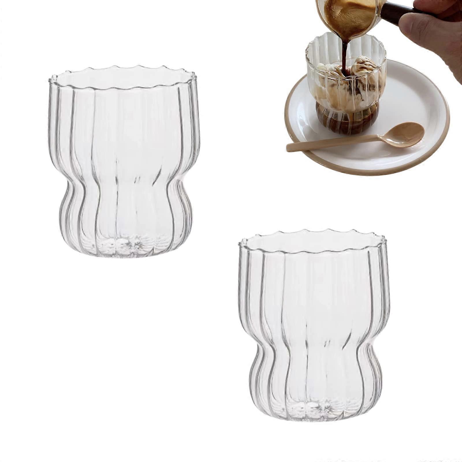 Ribbed Glass Cups Set 8.8oz Vintage Origami Ripple Design Durable Crystal for Cocktails and Desserts