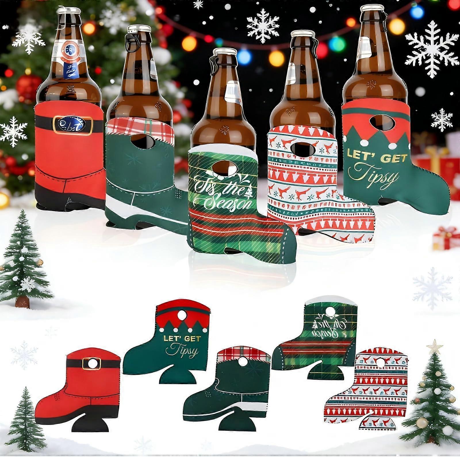 Christmas Beer Can Sleeves SockShaped Insulated Boot Holder for Holiday Parties 5 Pack
