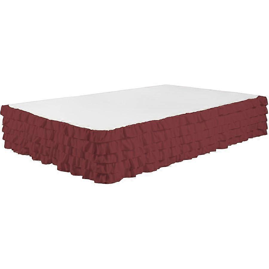 King Size Tiered Ruffle Bed Skirt Burgundy Microfiber 14 Inch Drop Elegant Dust Ruffle