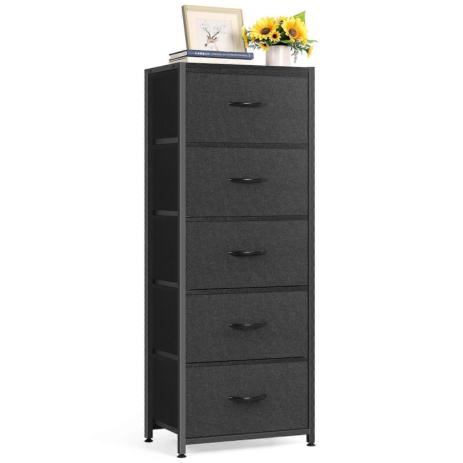 5 Drawer Bedroom Dresser, Tall Fabric Storage Tower Organizer with Wooden and Durable Metal Frame