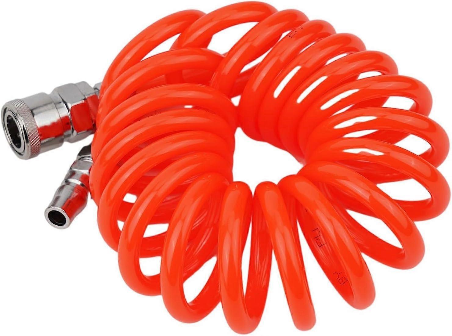 PU Spiral Air Compressor Hose 3m, 5mm x 8mm Pneumatic Hose with LeakProof Quick Connect, Orange