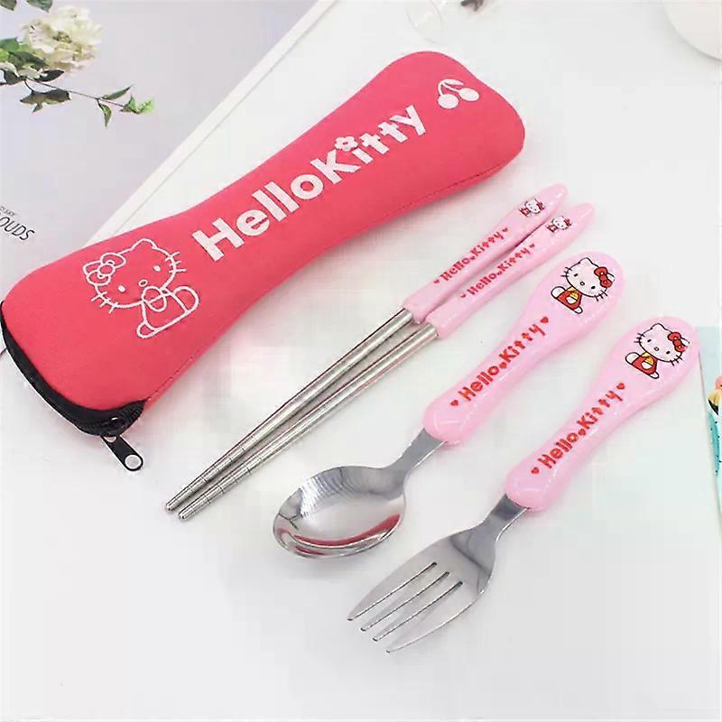 3pcs/set Hello Kitty Dinnerware Stainless Steel Portable Outdoor Household Knife Fork Spoon Tableware Kitchen Supplies Accessory