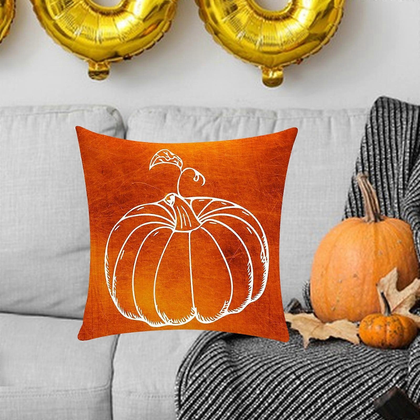 2 Pcs Pumpkin Striped Fall Pillow Covers 17.17x17.71in, compatible with autumn harvest Thanksgiving decor, cotton linen throw pillow cases for bed,