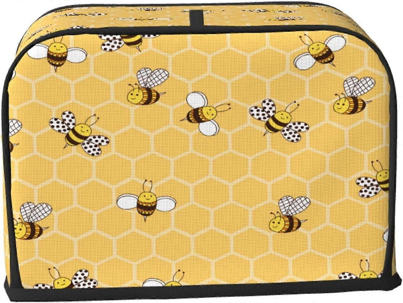 2 Slice Toaster Cover Cute Bees Yellow Beehive Small Kitchen Appliance Dust-Proof Covers With Loop Bread Maker Cover