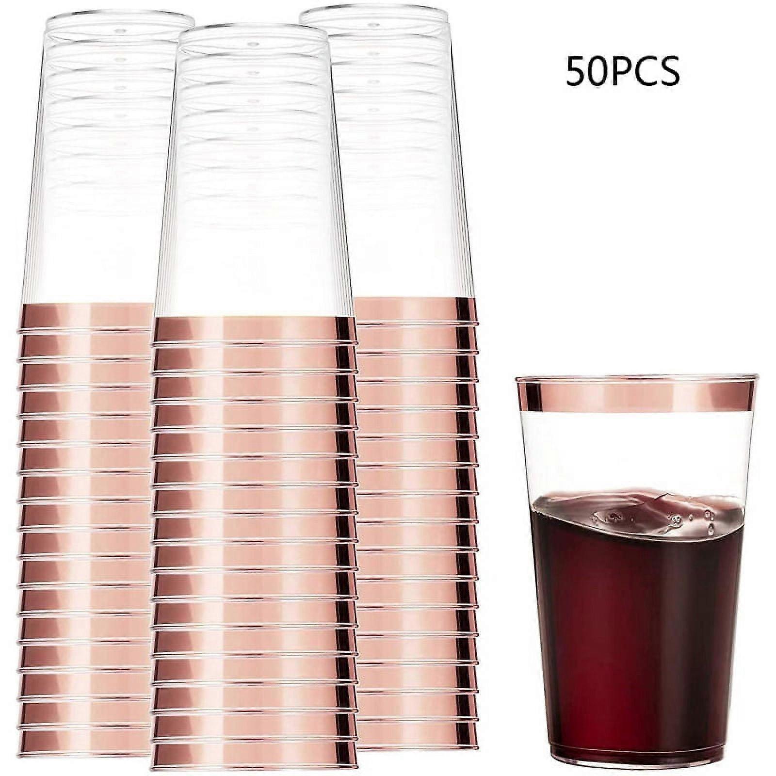 50PCS Plastic Cups 12 Oz Clear Plastic Cups Tumblers Rimmed Cups Fancy Disposable Wedding Cups Elegant Party Cups,Rose Gold