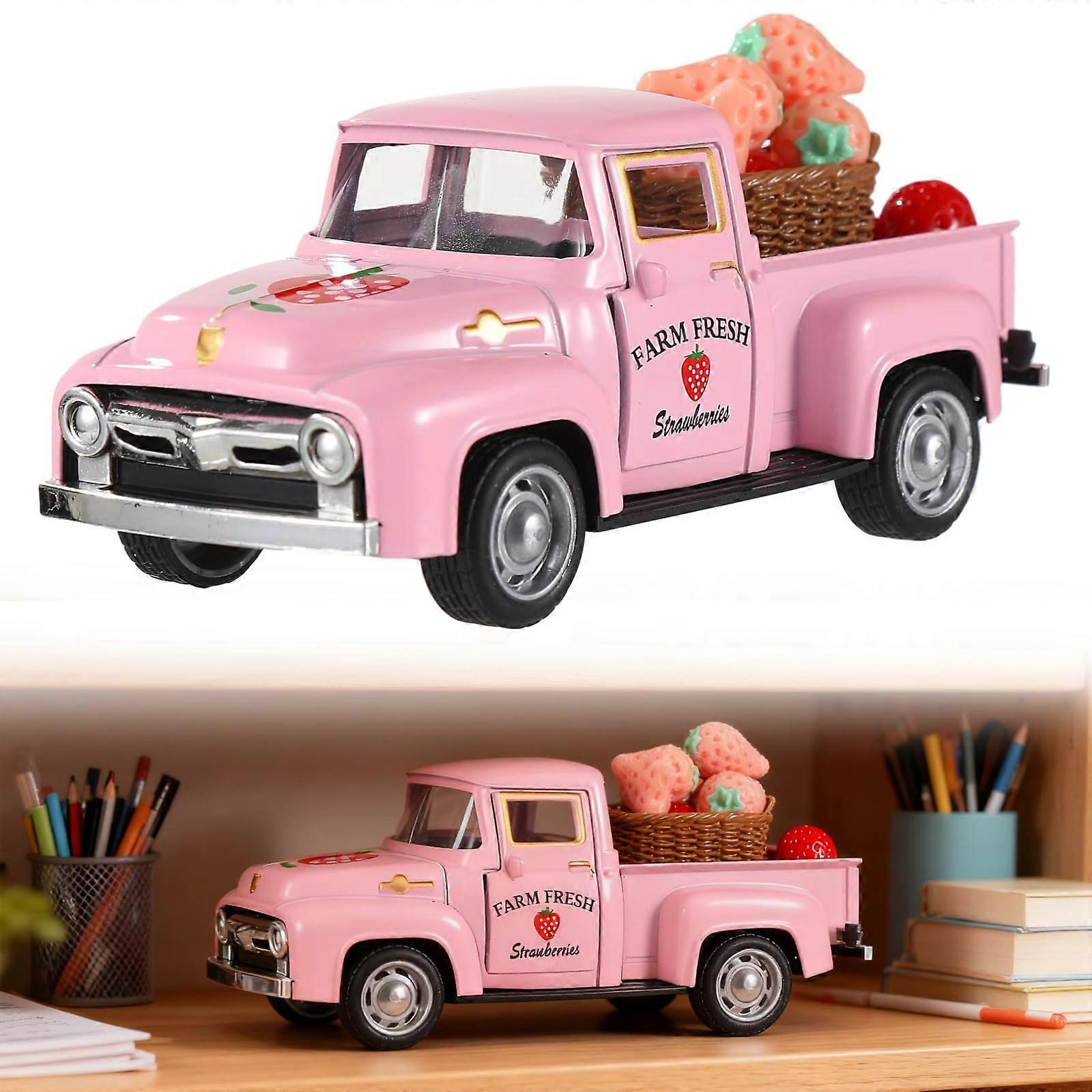 Diecast Vintage Pickup Truck with Strawberries Basket Rustic Metal Farmhouse Decor Display