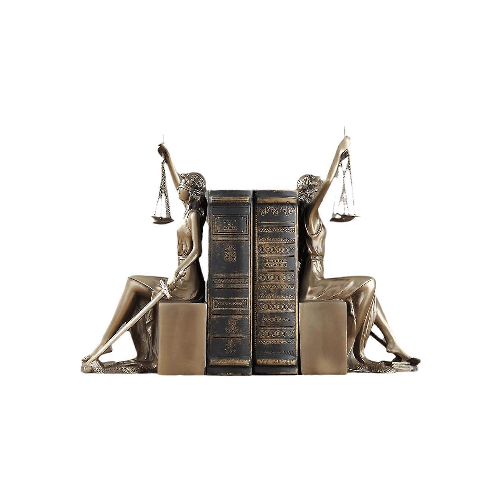 Gold Decorative Bookends with Justice Goddess Design, HeavyDuty Support for Shelves and Home Office