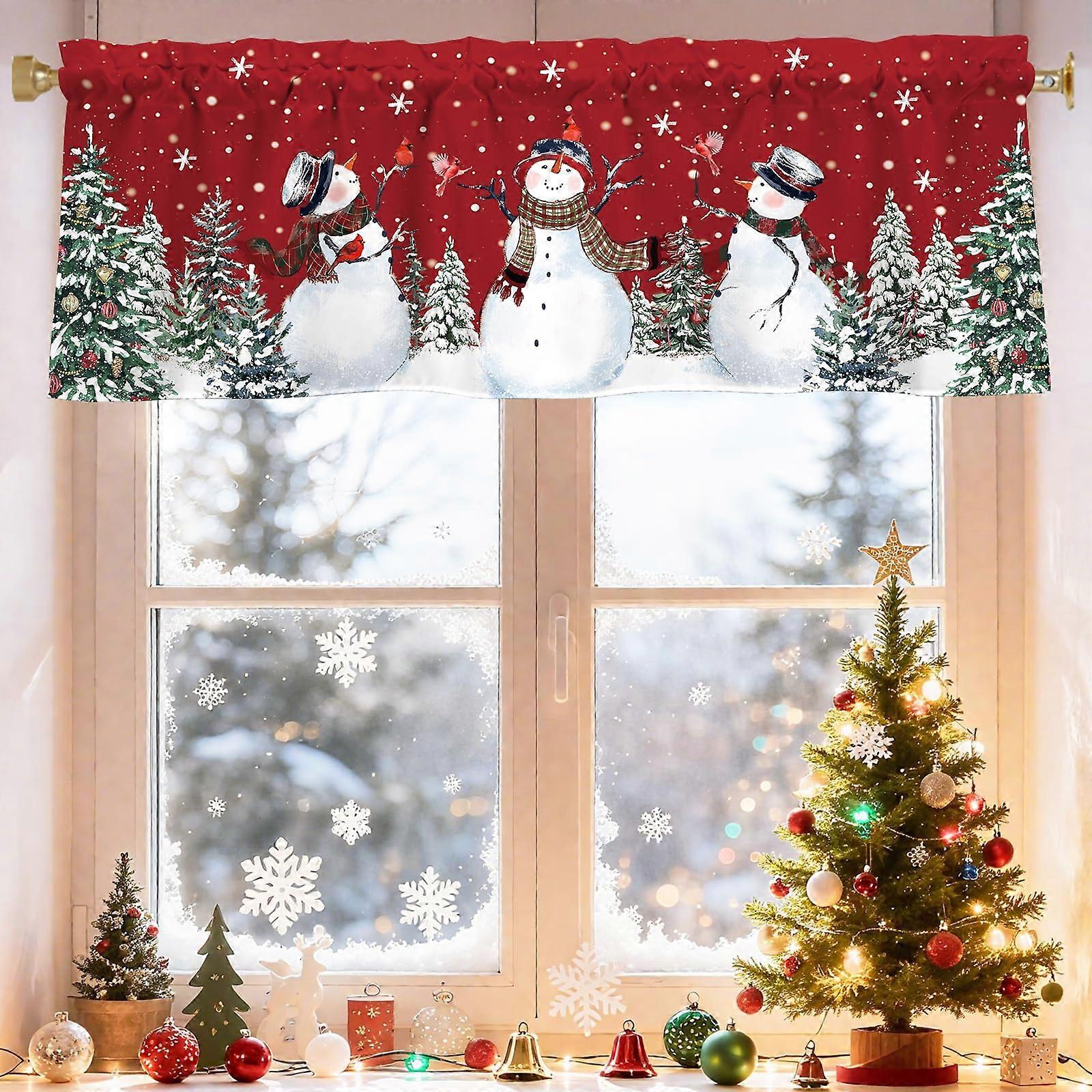 Christmas Window Valance 54x18 Inch Red Snowman Design for Kitchen Bathroom Holiday Decor