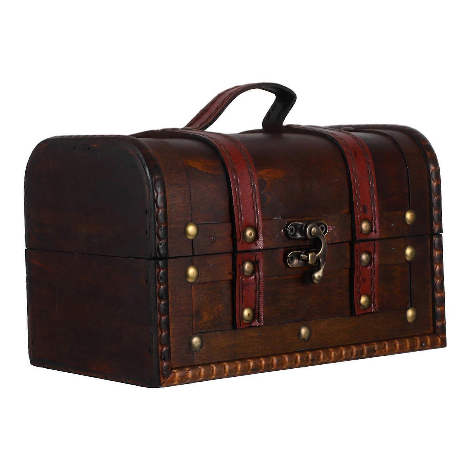 Small Vintage Wooden Treasure Chest with Lock, Pirate Style Keepsake Box for Jewelry, Coins, Tea