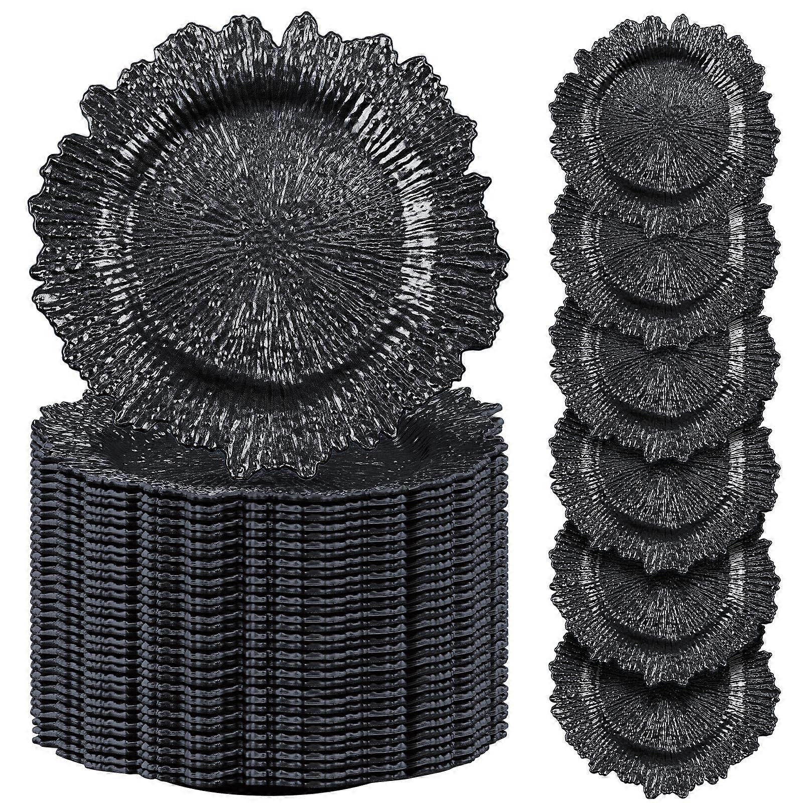 100 Pcs Charger Plates 13 Inch Plastic Wedding Chargers with Metallic Ruffled Rim for Elegant Table Decoration