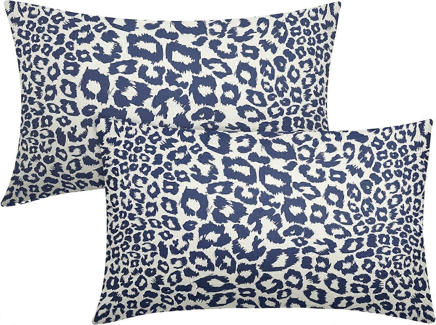 Navy Blue Leopard Print Pillow Covers 12x20 Inch, Set of 2, Compatible with Cheetah Animal Spots, Rectangle Lumbar Throw Pillows for Couch, Sofa,