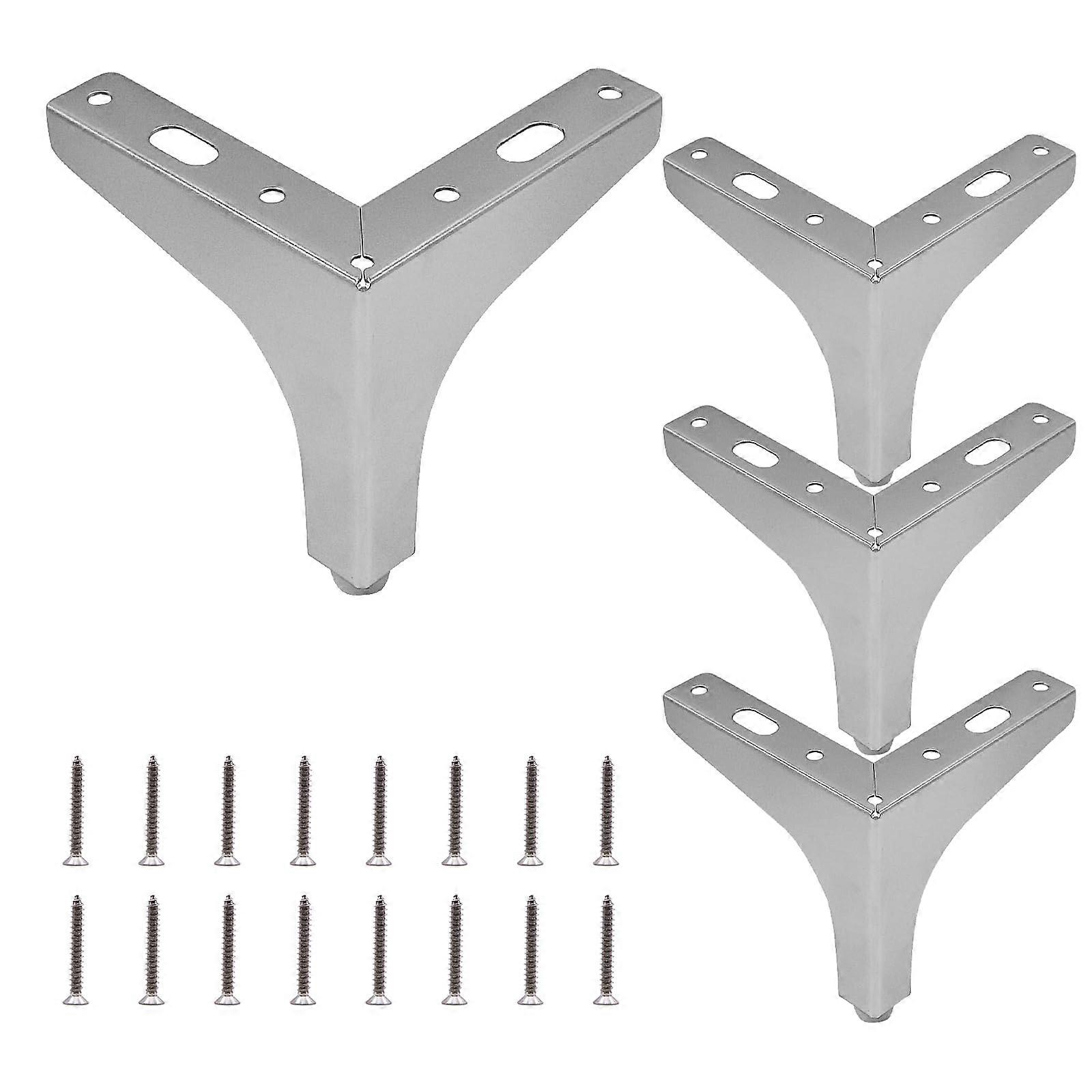 6 Inch Metal Furniture Legs Set of 4, Modern Triangle Heavy Duty Sofa Replacement Feet, Silver