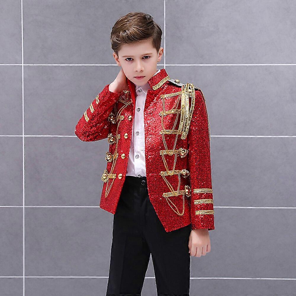 Boys Kids Children Sequin Single Breasted Jacket Dance Show Hussar Blazer Loose