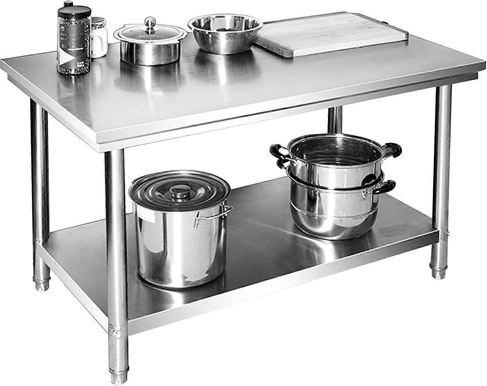Stainless Steel Work Table with Undershelf, Heavy Duty Commercial Kitchen Prep Table with Adjustable Feet, 100x60x80cm Ref: 5766