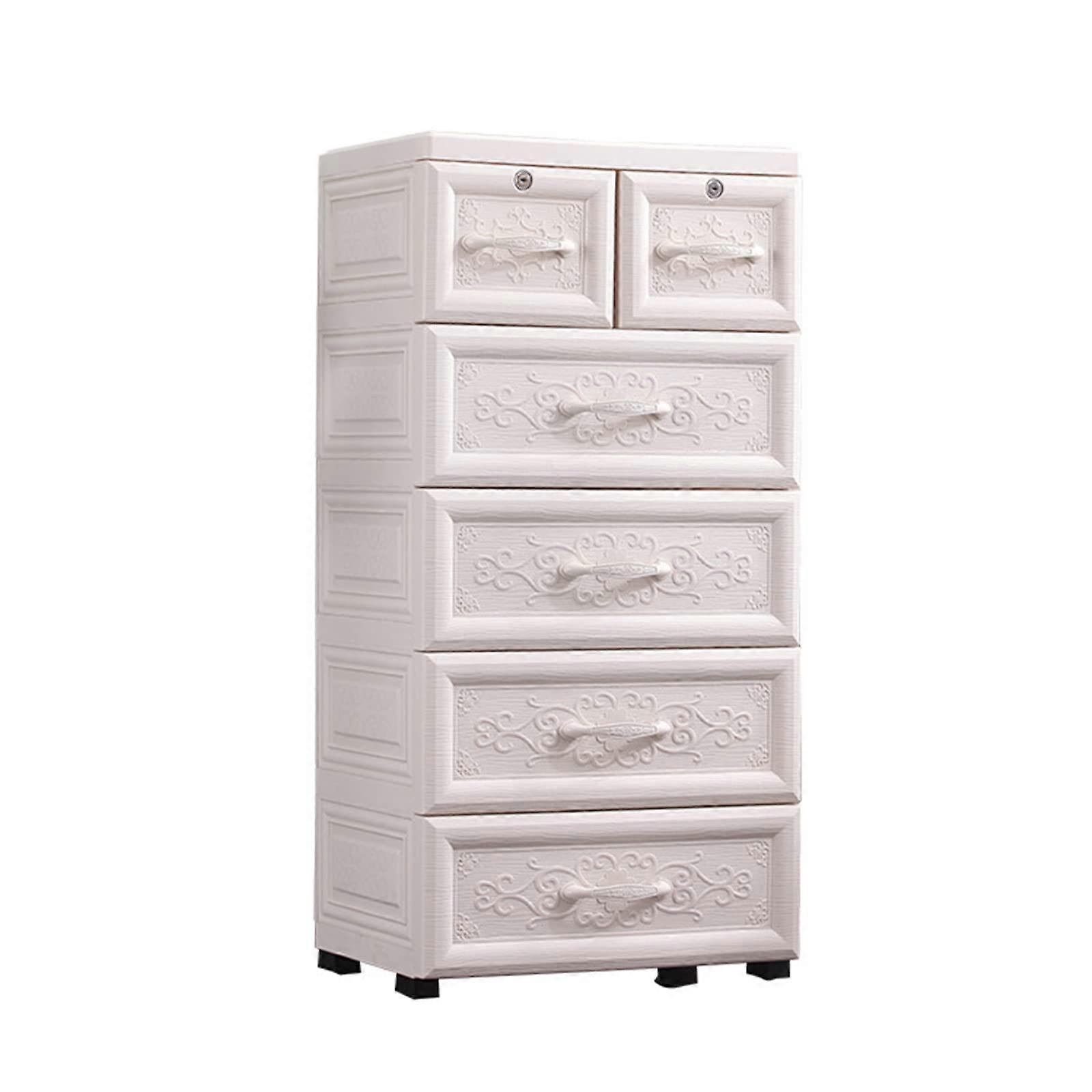 Ivory Plastic Storage Cabinet with Lock and Wheels, 6 Drawer Large Capacity Organizer for Bedroom and Nursery