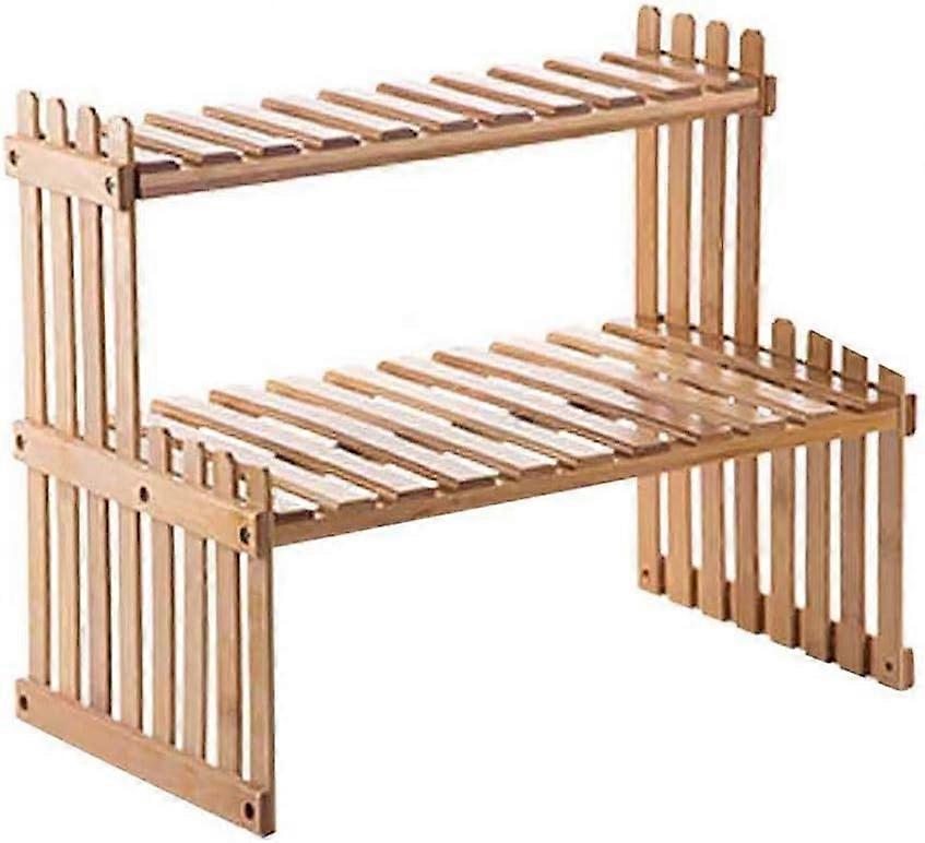 2 Tier Bamboo Kitchen Storage Rack, Durable Spice Organizer Shelf for Countertop or Bathroom