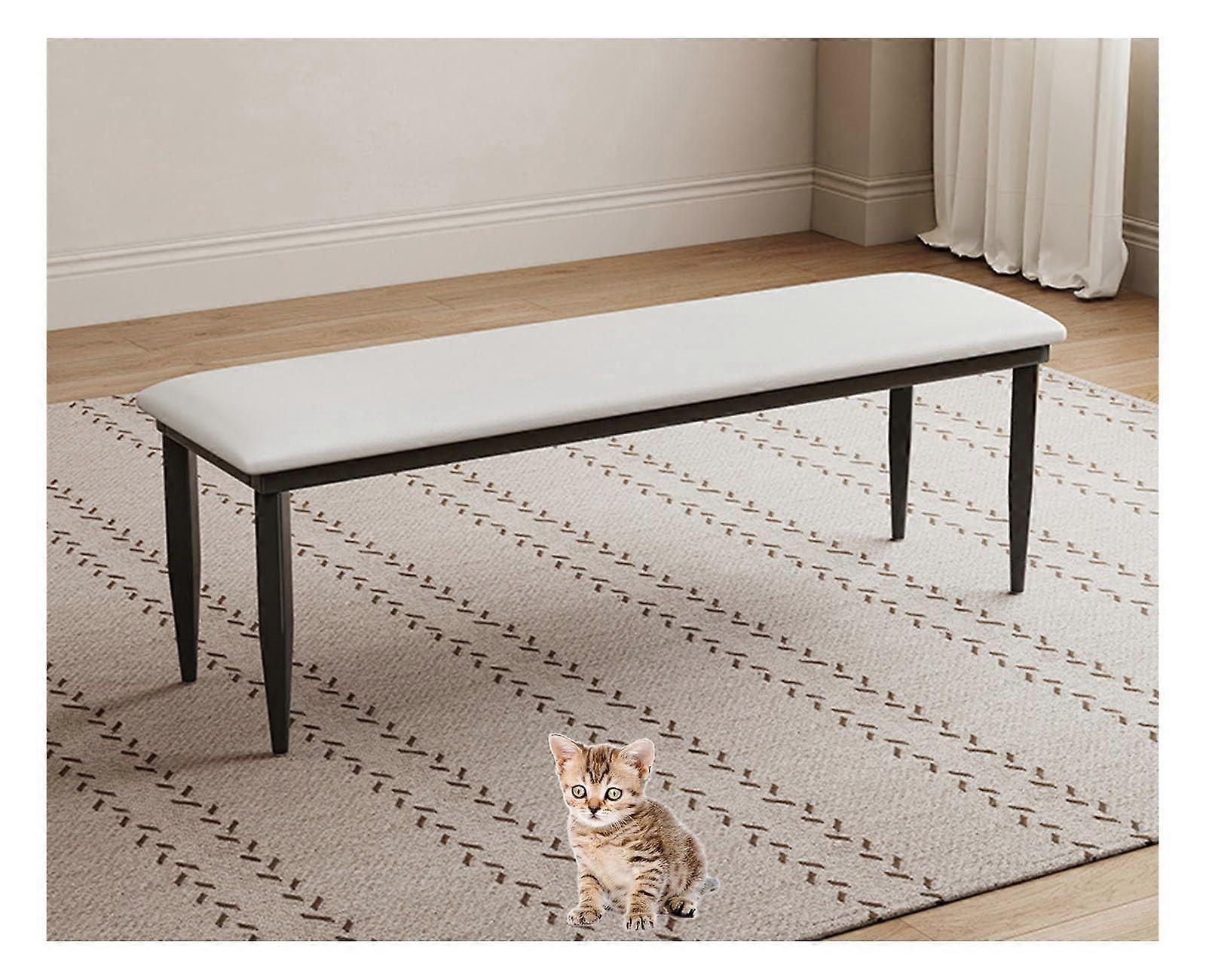 White PU Leather Dining Bench with Thick Padded Seat for Entryway or Restaurant Seating 100x30x48cm