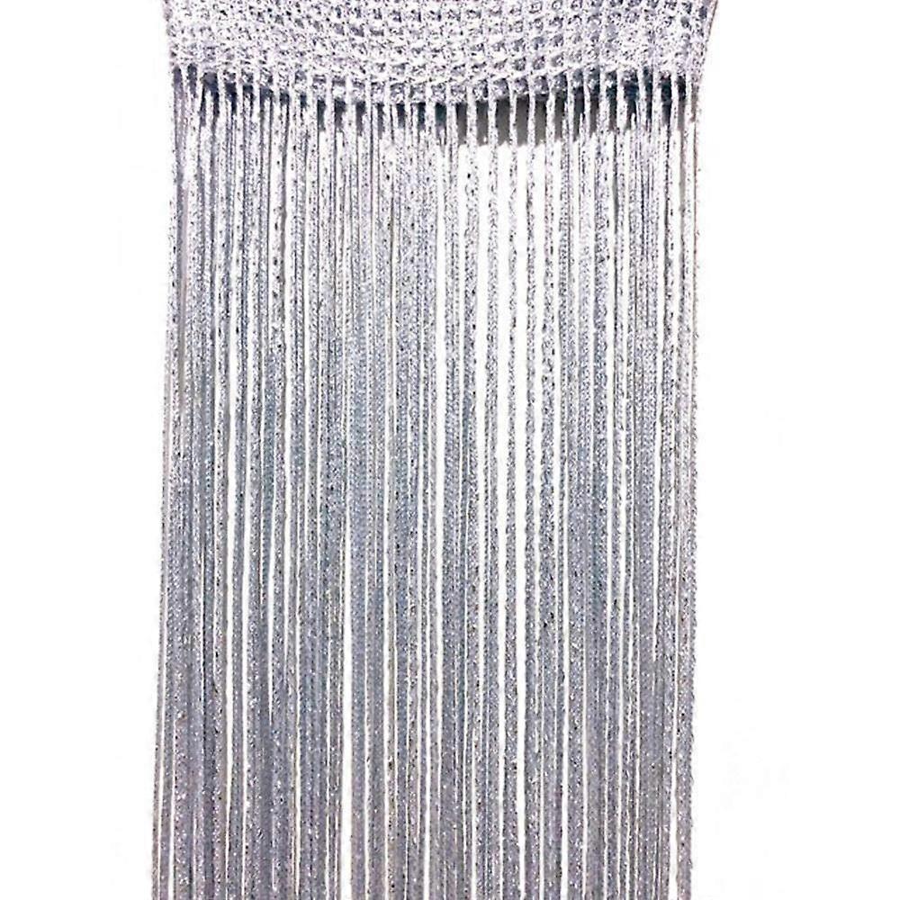 Hanging Room Divider 2PCS Silver Tassel Curtain Panels, Elegant Shiny Silk Partition for Doorway