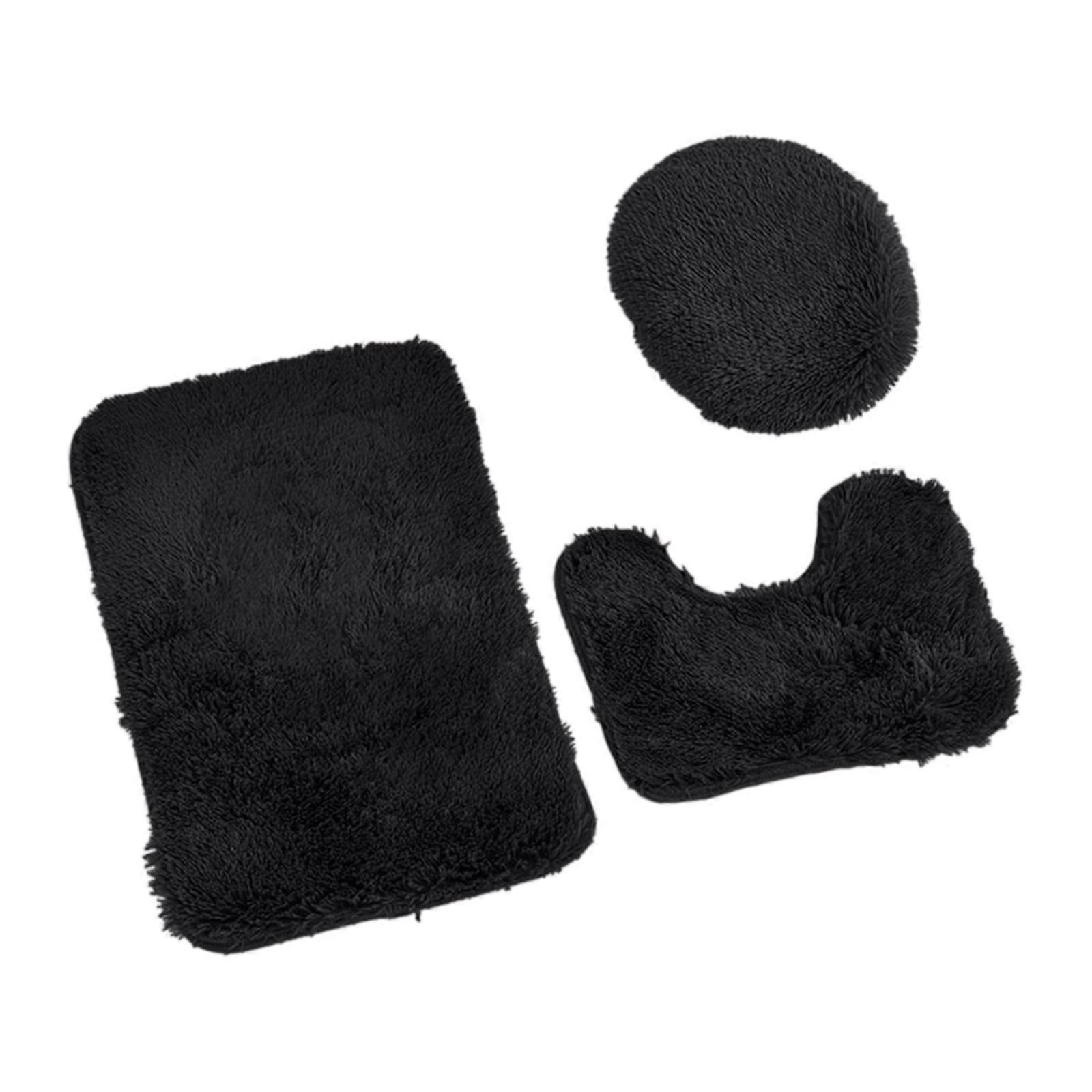 wileqep 3 Piece Bathroom Rug Set - Soft Anti-Slip Bath Mat, U-Shaped Toilet Rug & Lid Cover (Black)